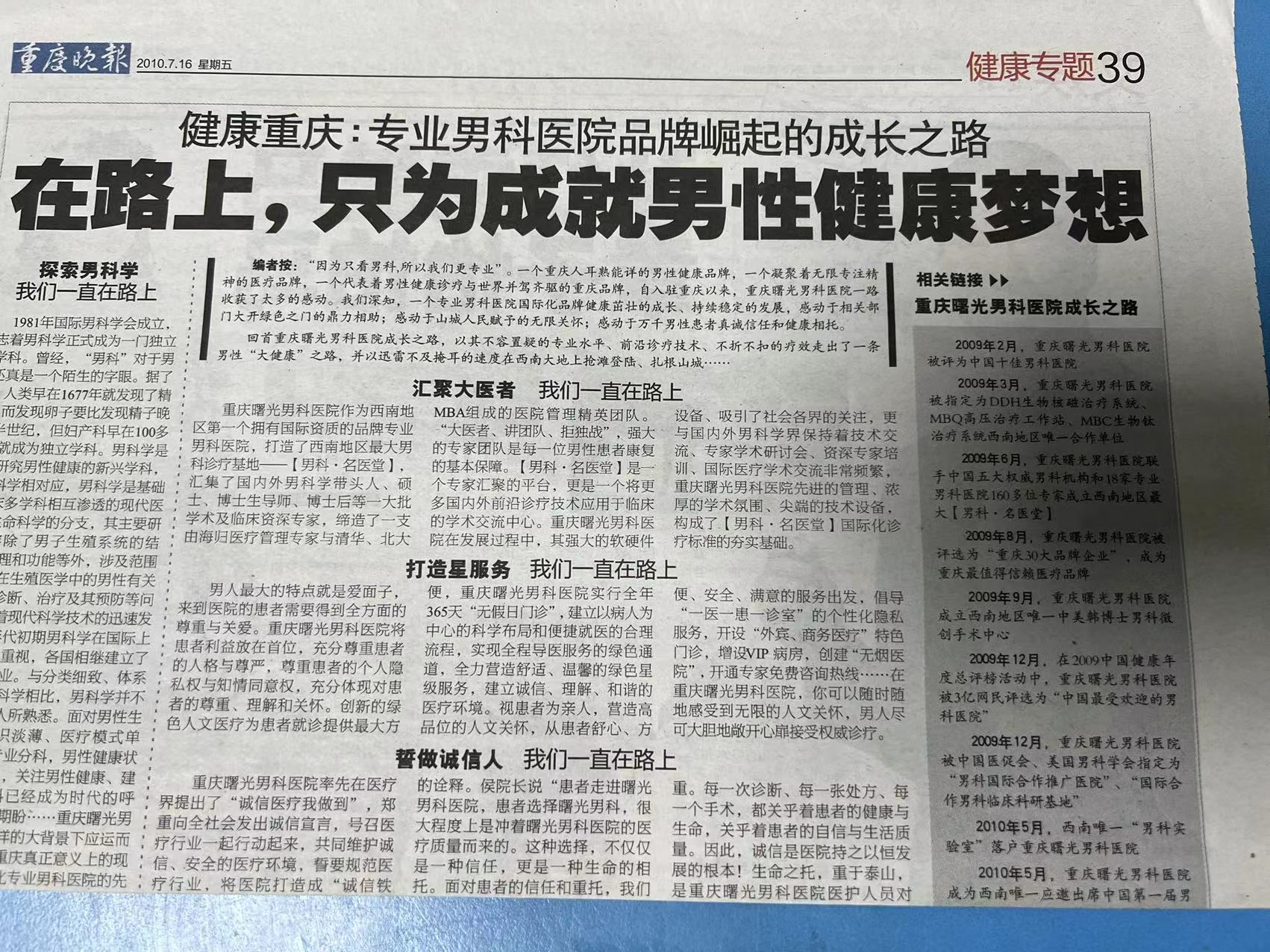 重庆男科医院发布男科疾病诊疗新趋势-重庆曙光男科医院坑钱?